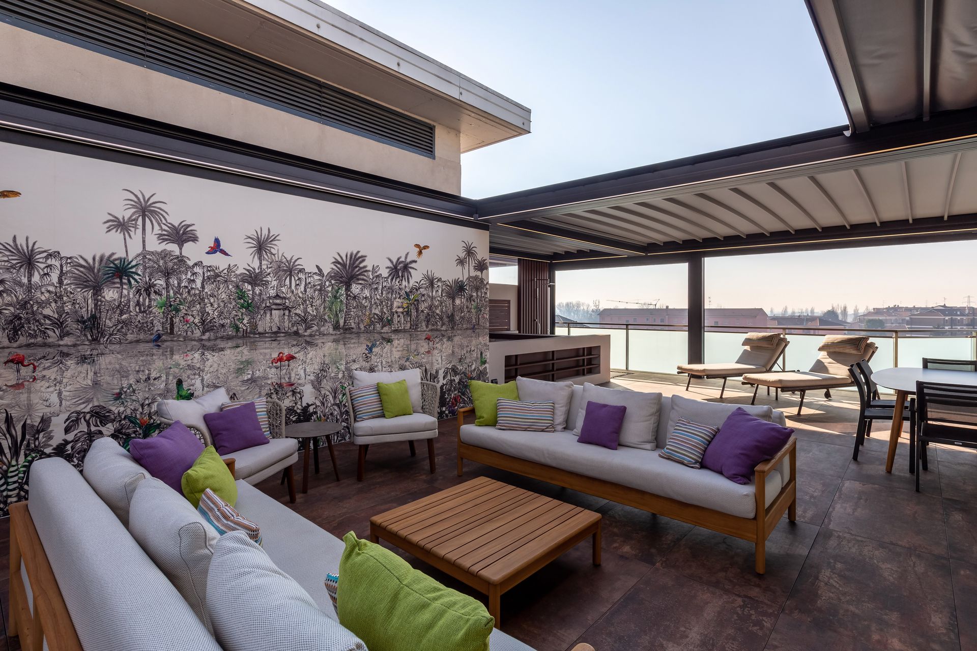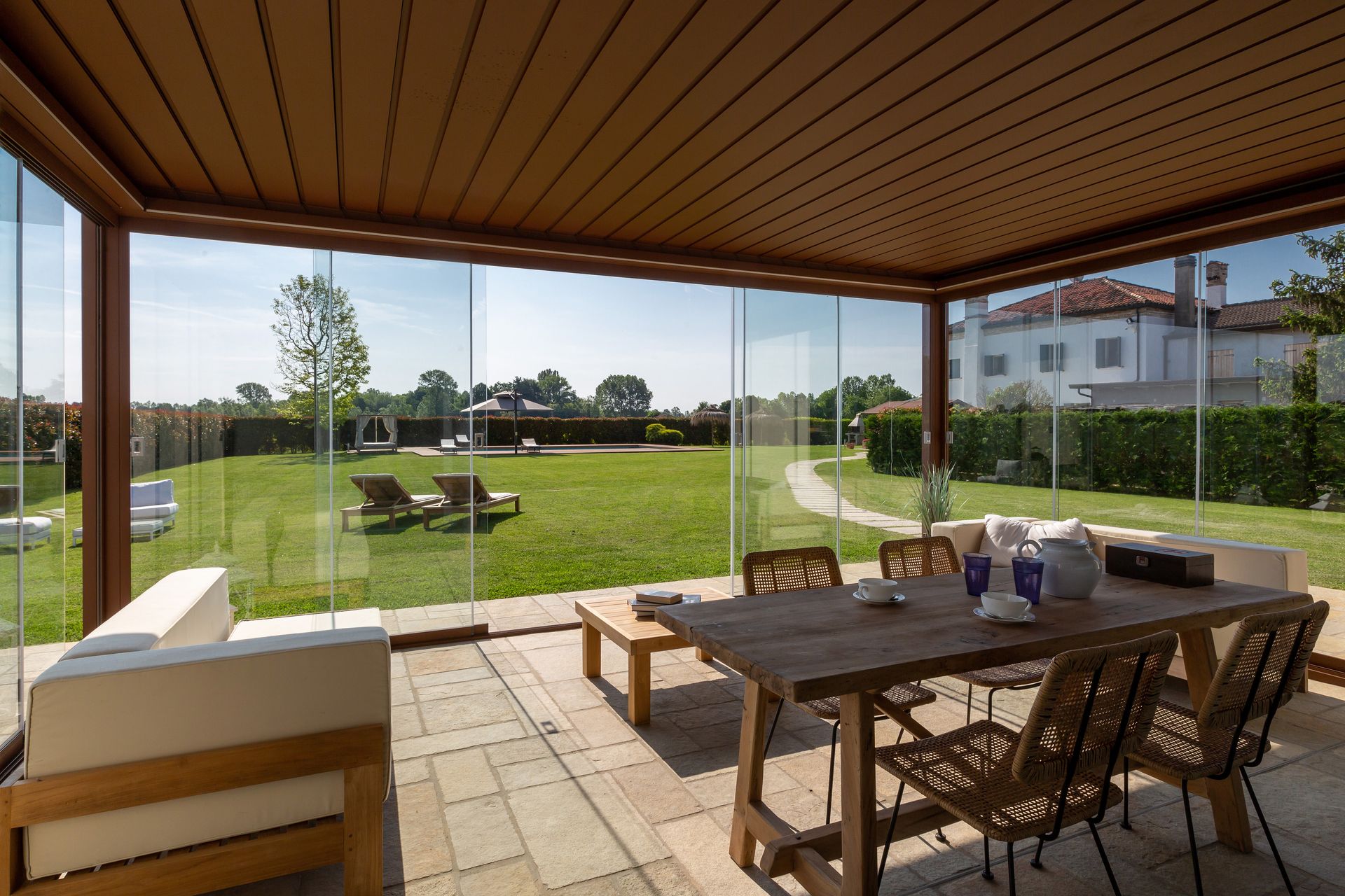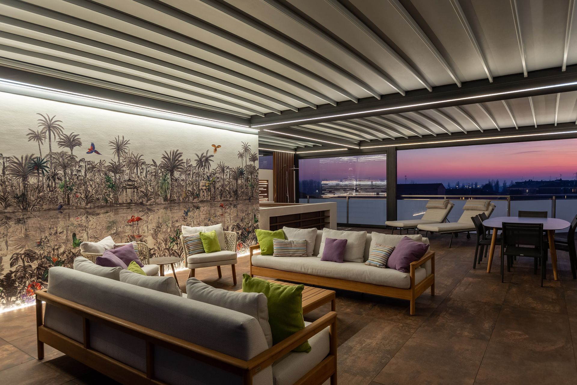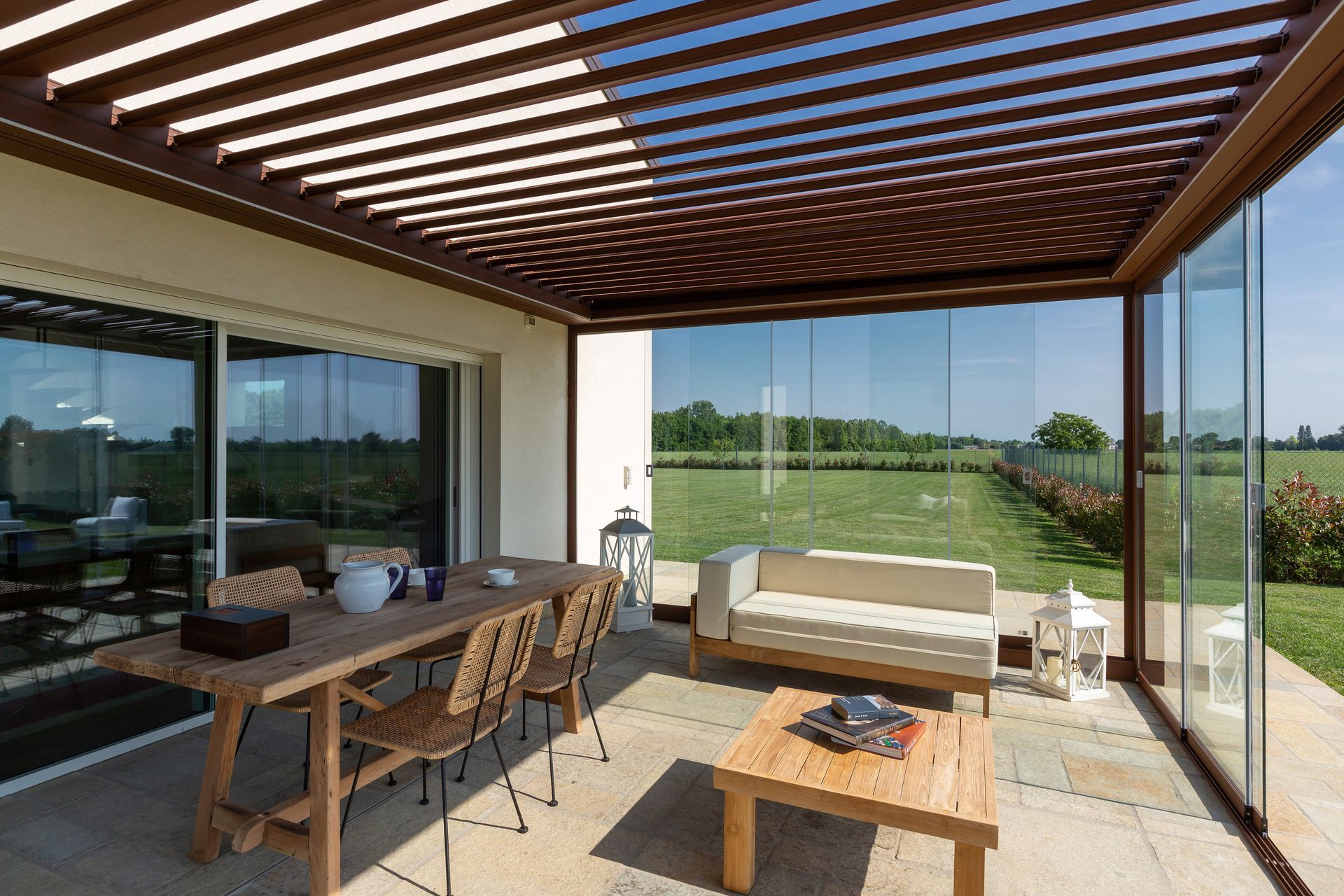 La pergola bioclimatica offre un controllo totale del passaggio della luce solare diretta e dell’arieggiamento.