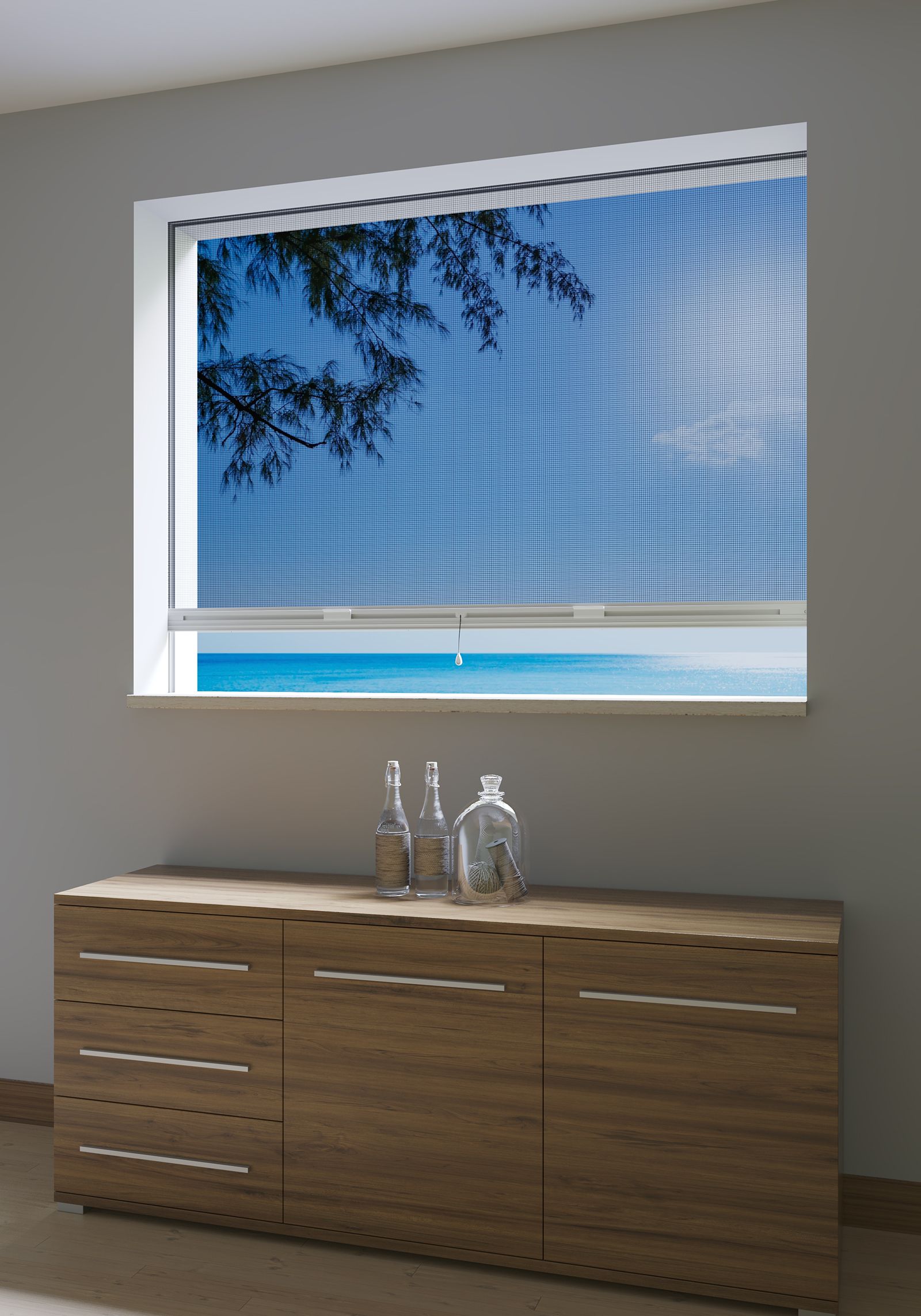 Zanzariera Plissettata, Apertura Verticale, ingombro 22mm, reti grigie, colorate, metallizzate o antipolline.